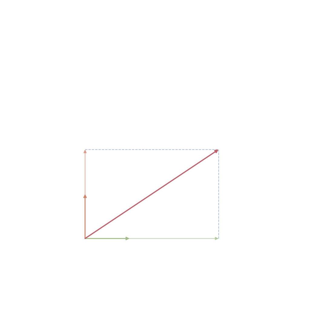 Notice that the vector \mathbf{v} itself does not change; only its coordinates relative to the chosen basis have changed. This computation also shows how we do algebra with vectors, we scale and add the coordinates of the basis vectors component-wise.
