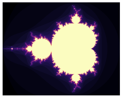 Each pixel corresponds to a complex number c. Dark regions indicate values for which the sequence remains bounded; bright regions escape quickly. The boundary of the Mandelbrot set is infinitely complex: zooming in reveals self-similar structures at all scales. This fractal geometry connects the study of sequences to topology, complex dynamics, and even theoretical physics.